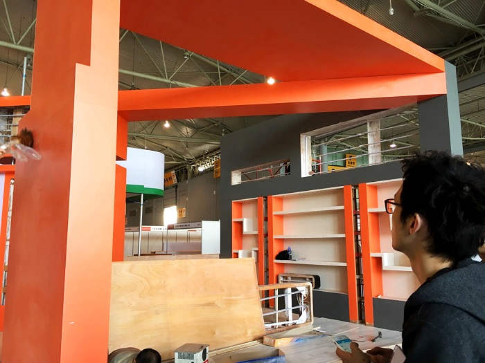 4.16,搭建开始。成都的工人和和气气,慢悠悠,负责搭建的小伙伴,一点也不敢放松监督。