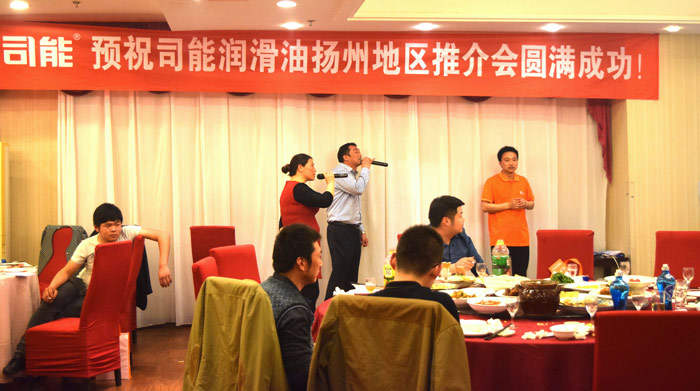 司能经销商扬州天沁工程设备有限公司赵总发表了欢迎致辞。他讲到,司能润滑油自进入扬州市场以来,非常感谢朋友们一直以来的支持和厚爱,相信在各位朋友的共同努力下司能润滑油在扬州地区一定会快速成长。