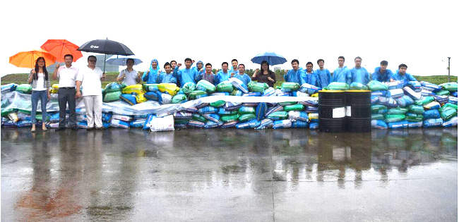 ? ? ? ? 在公司领导带领和指导下,防汛抗洪小组在雨中各司其职、主动配合、积极投入,切实做到了召之即来、来之能战、战之能胜。江苏司能生产总监陈鹰主动请缨,全天24小时值守在现??;司能第六党小组组长于增政带领全体党员利用休息日提前做好应急物资准备工作;司能全体员工为了避免物资损失连夜奋战……这些不顾个人得失的精神,正是我们在不断传递和保持的正能量!