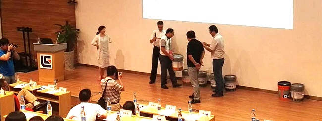 ? ? ? ?会上发布的16L及18L新产品,是柳工牌润滑油根据近期市场变化,为了满足客户需求而推出的产品。新品的推出能让经销商更好的为三包外客户提供服务,为机械提供更好的润滑效果。