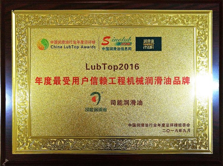 9月19日,由中国润滑油信息网、《润滑油市场》杂志发起主办,中国国际润滑油品及应用技术展览会联合主办的“LubTop2016 中国润滑油行业年度总评榜”在广州朗豪酒店隆重举行。司能石油化工有限公司受邀出席本次盛会,并在会上荣获“最受用户信赖工程机械润滑油品牌”大奖。