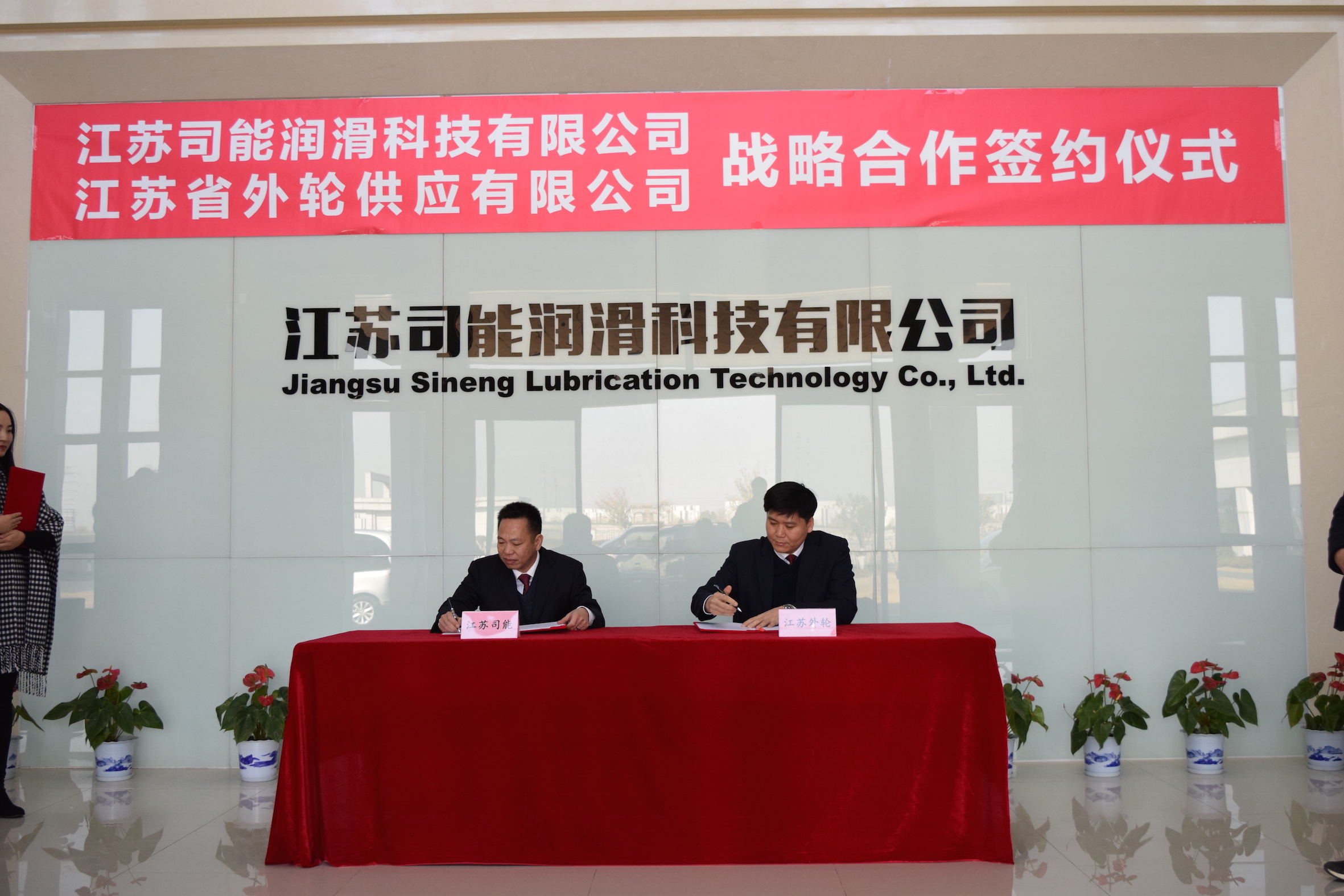 2021年1月12日上午,江苏司能润滑科技有限公司与江苏省外轮供应有限公司正式签订战略合作协议,双方将共同推动润滑油在港口机械和船舶领域的全面发展。司能石油化工有限公司常务副总、江苏司能润滑科技有限公司总经理吴土金,司能石油化工有限公司副总经理、总工程师吴宪,江苏省外轮供应有限公司董事长、总经理孙继强,副总经理沈永保等领导嘉宾出席了签约仪式。