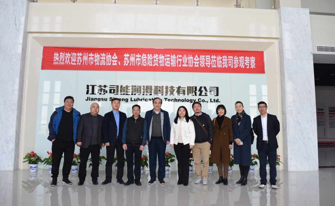3月13日,春风渐暖,初春的溧阳一派生机盎然。苏州市物流协会会长祁总、苏州市危险货物运输行业协会会长徐总、昆山海联仓储运输有限公司总经理孙总一行深入江苏司能润滑科技有限公司参观调研,司能石化副总经理吴土金、营销公司总经理王靖等陪同调研、座谈。双方就强化产业对接、深化合作交流、助推高质量发展等方面进行友好交流。